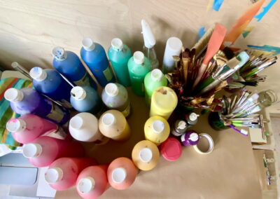 Lavoro con approcci diversi e insieme andiamo a scoprire la forza espressiva dell’arte. Non serve alcuna conoscenza o capacità artistica, è il processo creativo e non il risultato che conta.